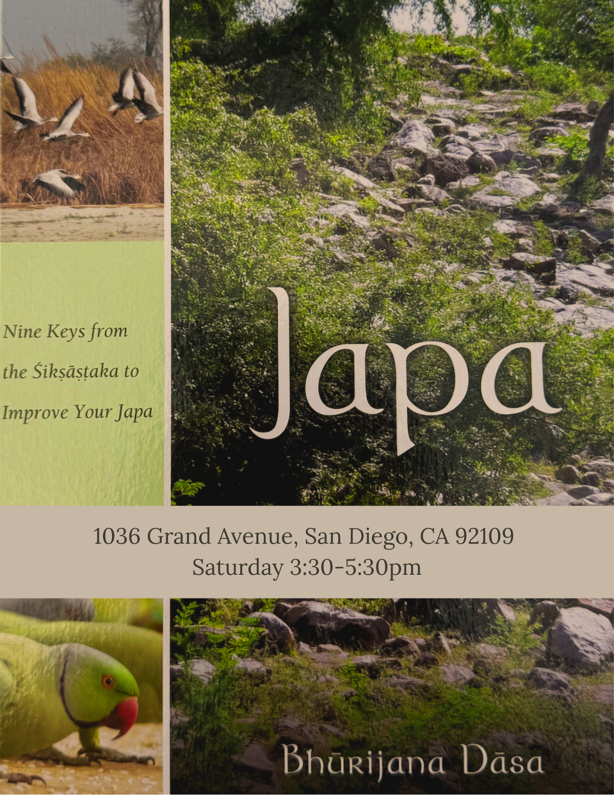 Please join us for a special study of Japa, an inspiring book that deepens our understanding of the sacred science of chanting. Together, we’ll explore practical insights to help us strengthen our connection with the holy name and advance swiftly in Kṛṣṇa consciousness.